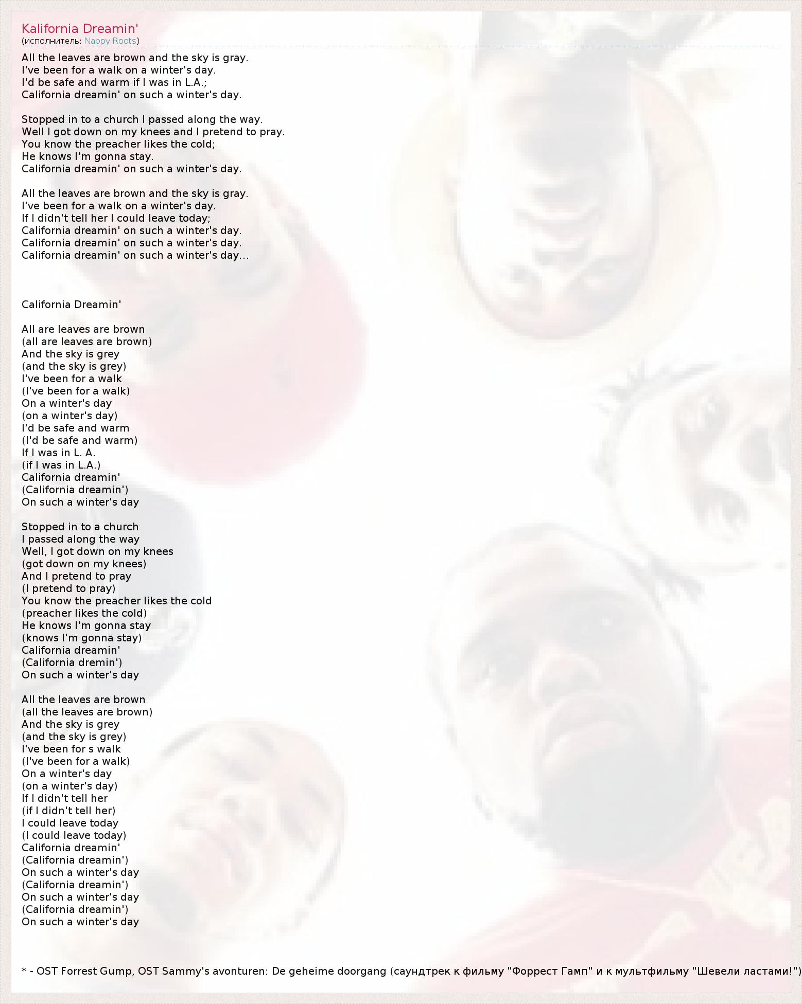 А как ты думаешь, о чем песня "Kalifornia Dreamin'" ?