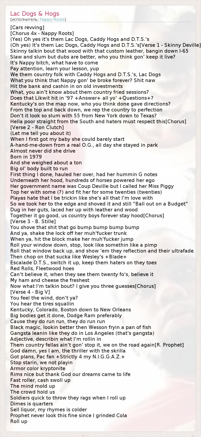 А как ты думаешь, о чем песня "Lac Dogs & Hogs" ?