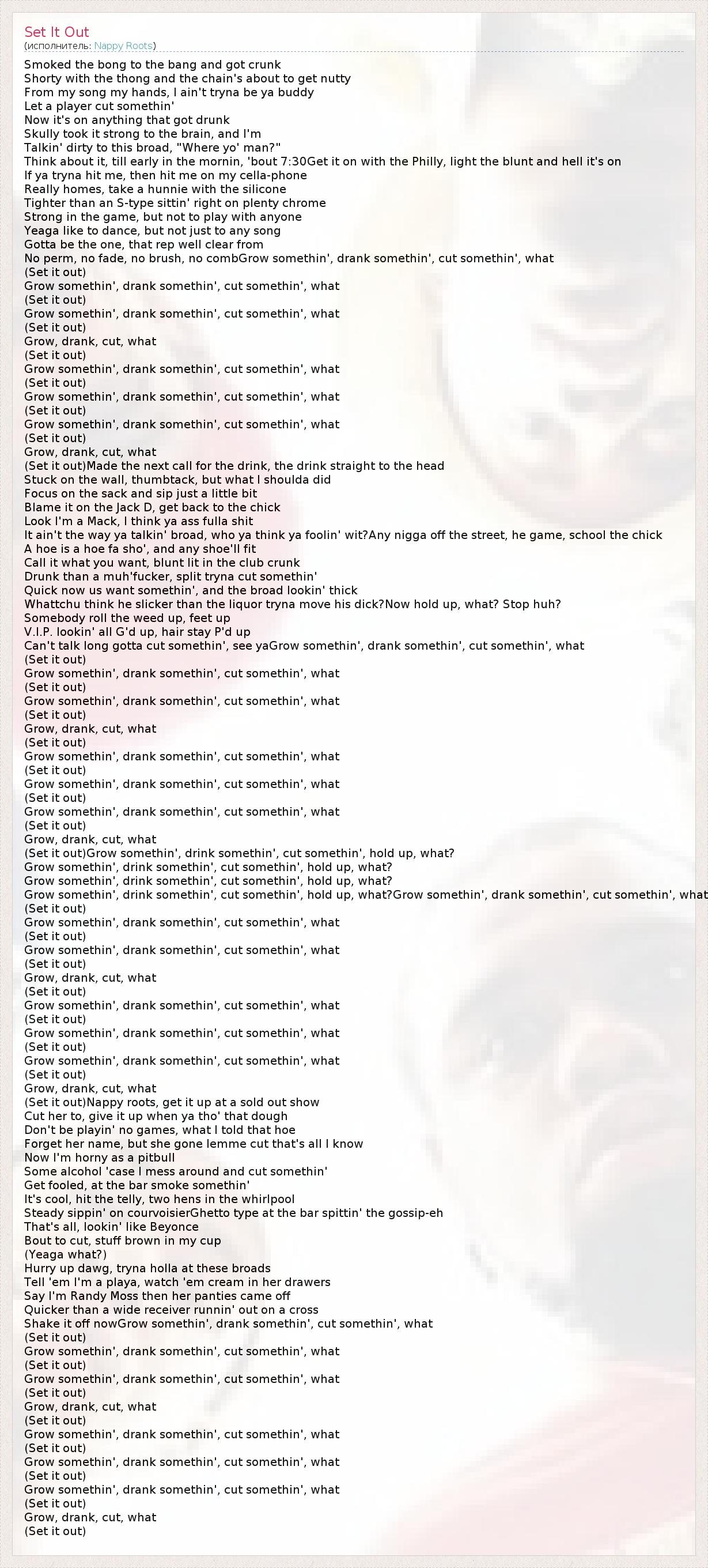 (Set it out)Nappy roots, get it up at a sold out show