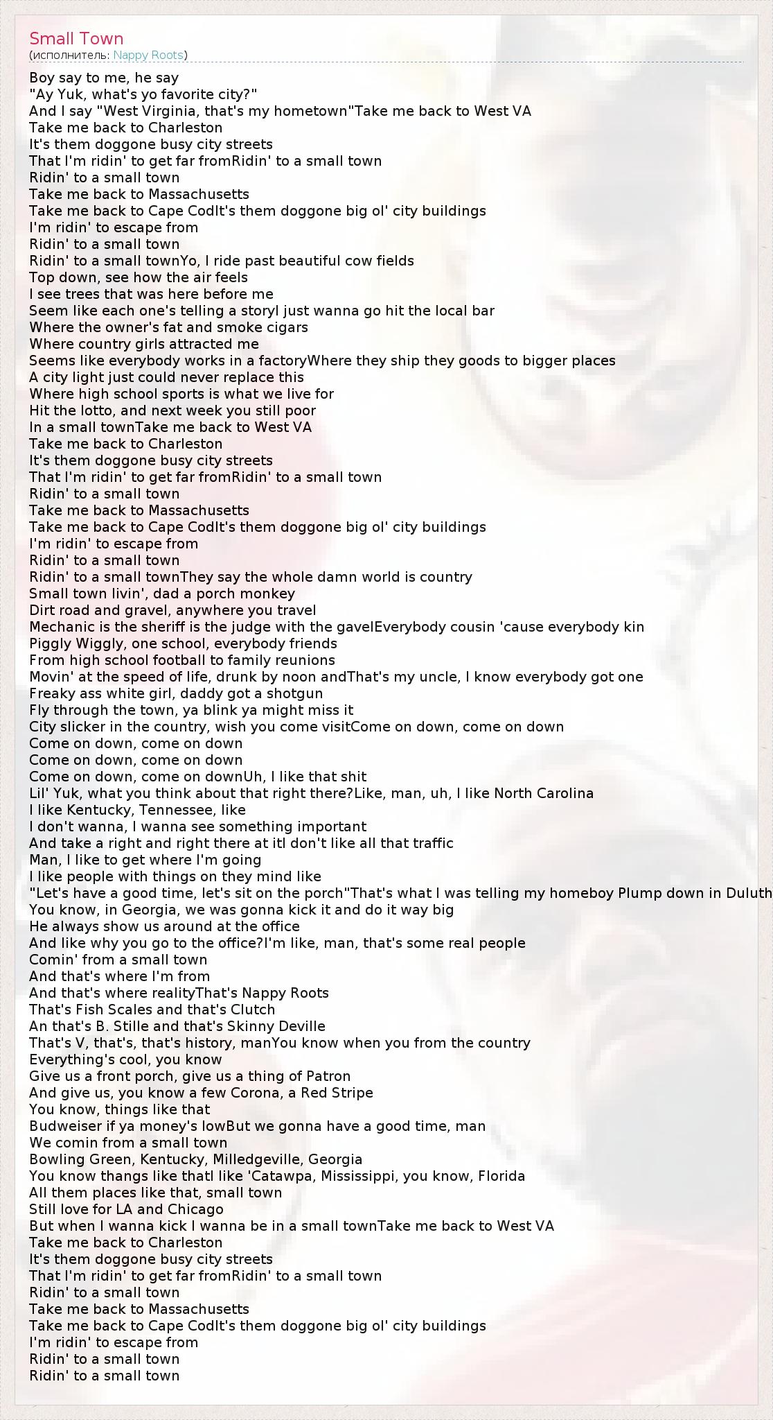 А как ты думаешь, о чем песня "Small Town" ?