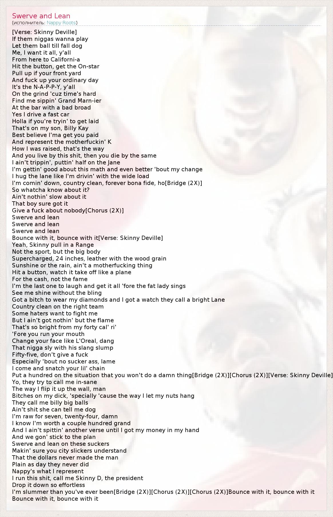 А как ты думаешь, о чем песня "Swerve and Lean" ?