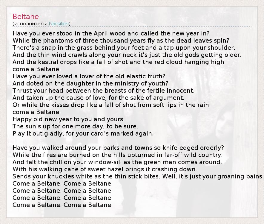 А как ты думаешь, о чем песня "Beltane" ?
