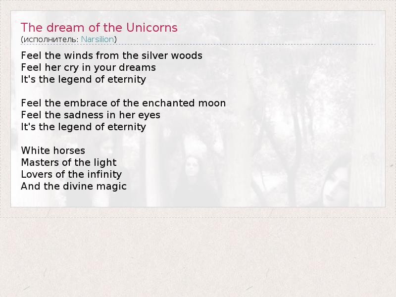 А как ты думаешь, о чем песня "The dream of the Unicorns" ?