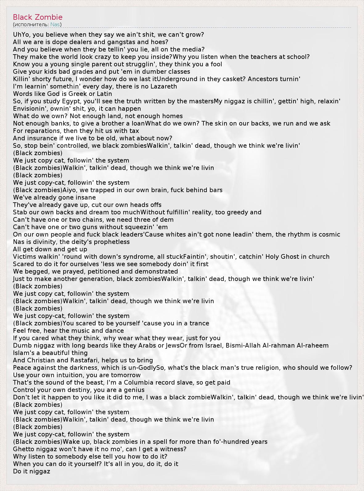 А как ты думаешь, о чем песня "Black Zombie" ?