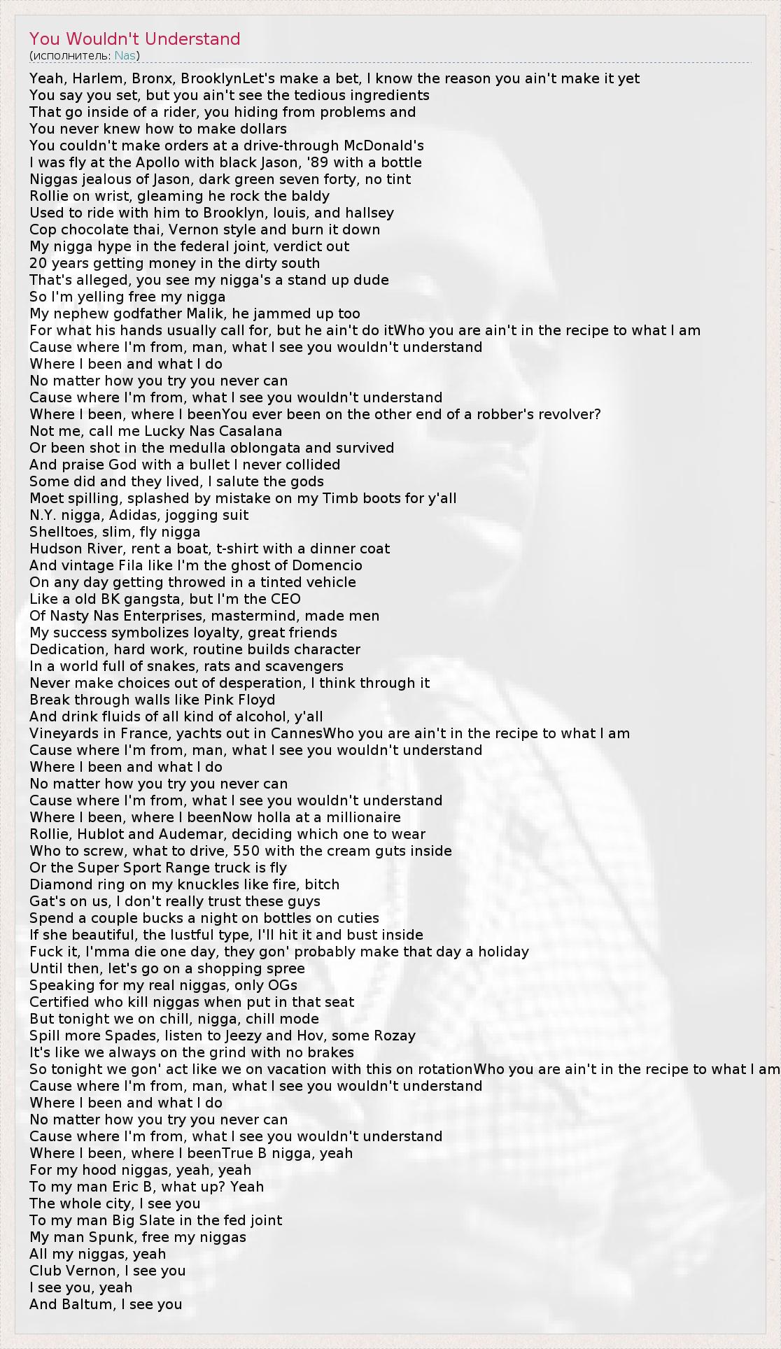 ГлавнаяИсполнителиNasYou Wouldn't Understand