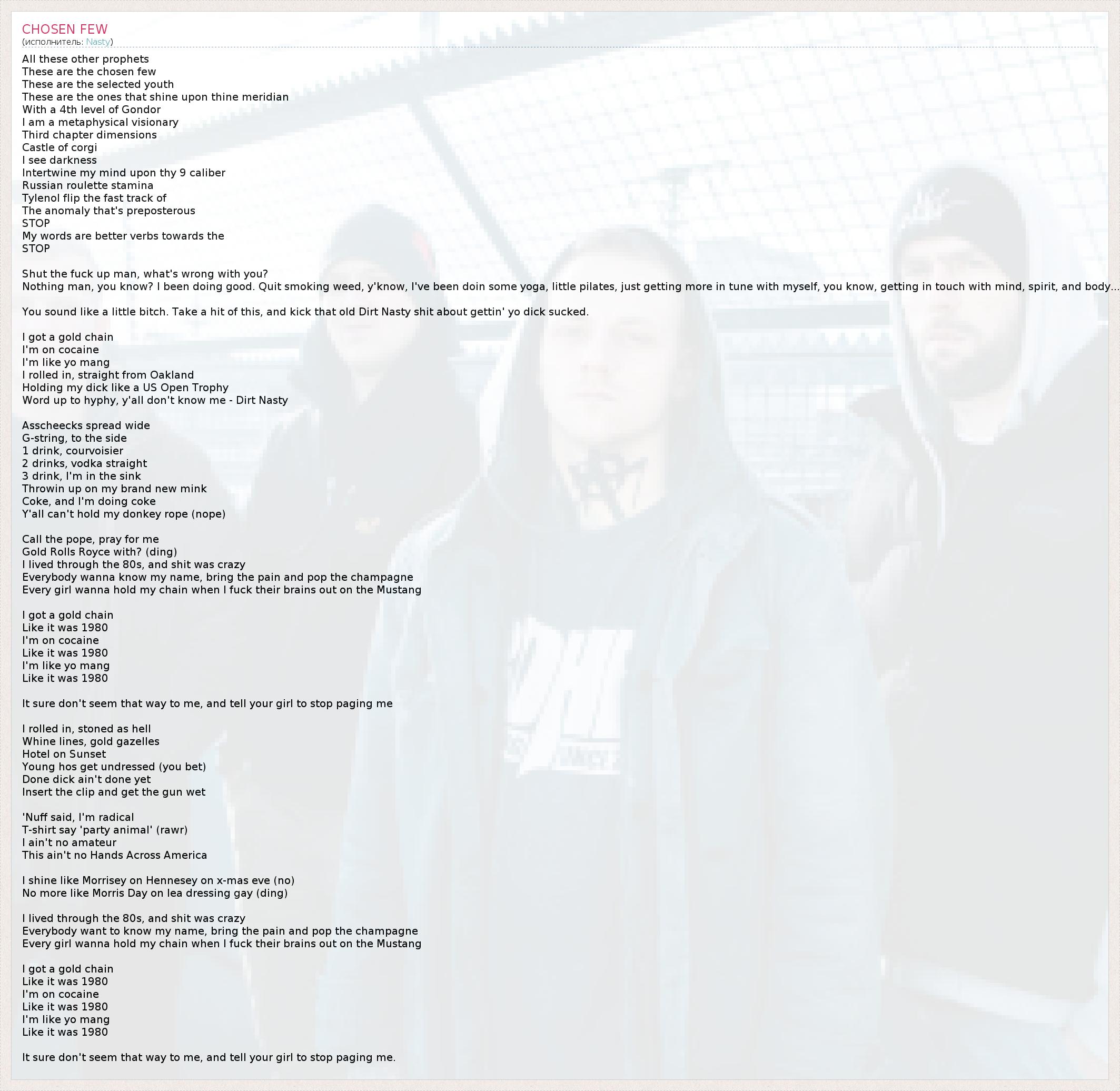 А как ты думаешь, о чем песня "CHOSEN FEW" ?