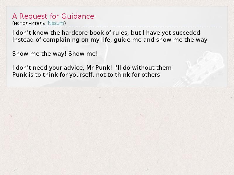 ГлавнаяИсполнителиNasumA Request for Guidance