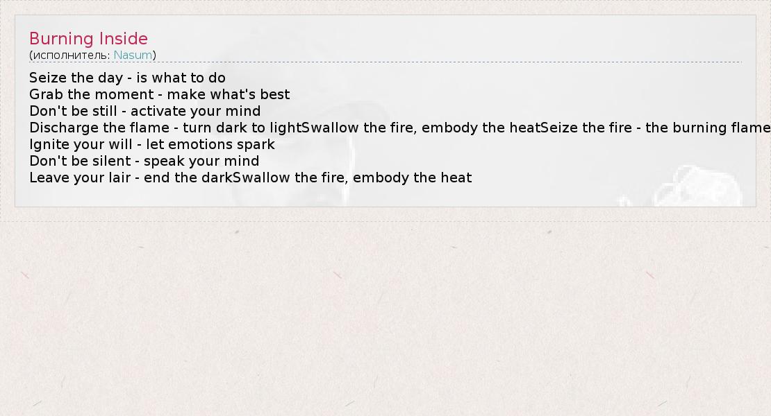 А как ты думаешь, о чем песня "Burning Inside" ?