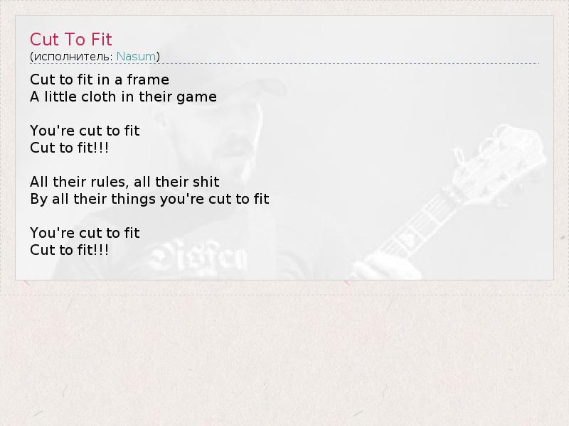 А как ты думаешь, о чем песня "Cut To Fit" ?