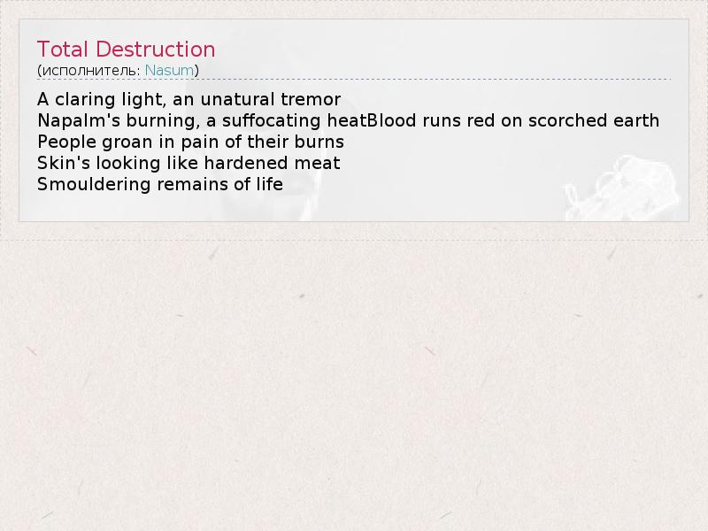 А как ты думаешь, о чем песня "Total Destruction" ?