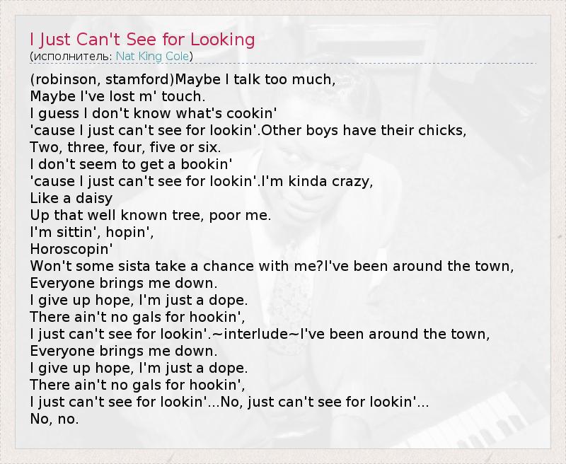 ГлавнаяИсполнителиNat King ColeI Just Can't See for Looking