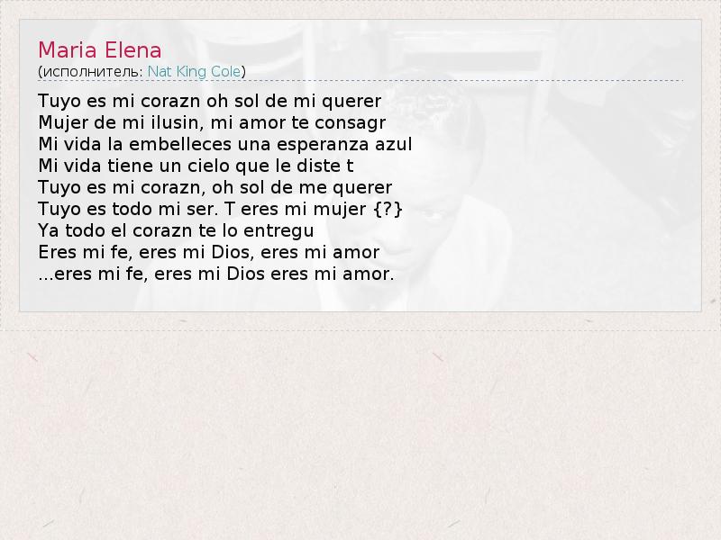 А как ты думаешь, о чем песня "Maria Elena" ?