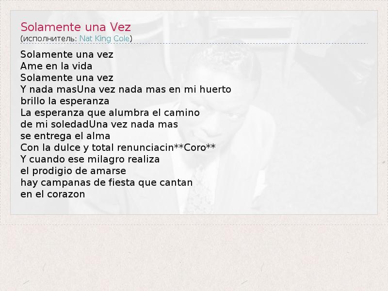 А как ты думаешь, о чем песня "Solamente una Vez" ?