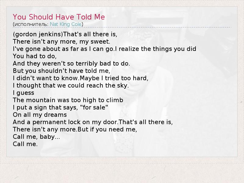 А как ты думаешь, о чем песня "You Should Have Told Me" ?
