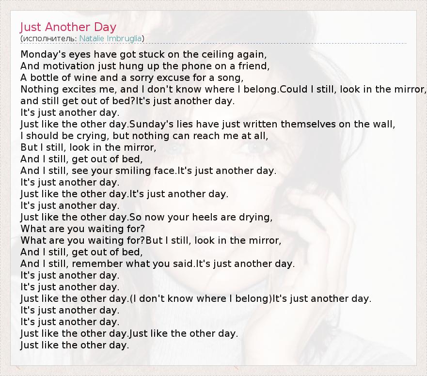А как ты думаешь, о чем песня "Just Another Day" ?
