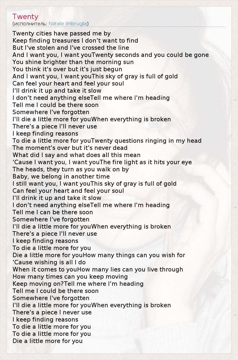 А как ты думаешь, о чем песня "Twenty" ?