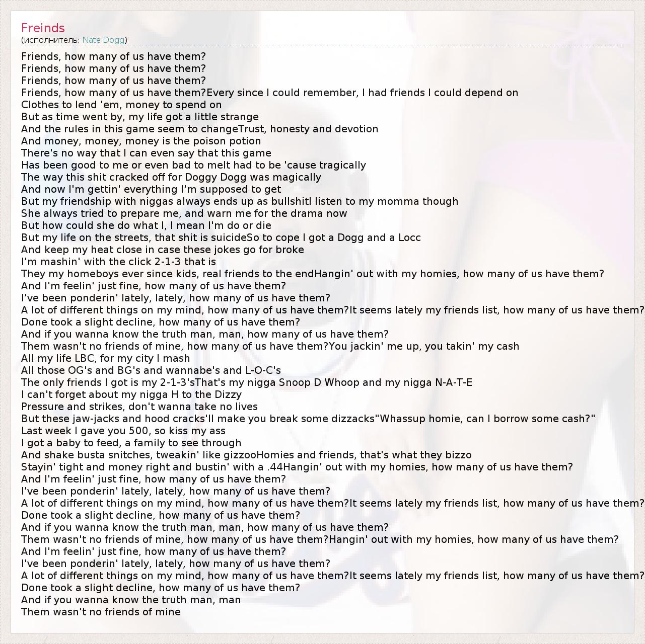 Them wasn't no friends of mine, how many of us have them?Hangin' out with my homies, how many of us have them?