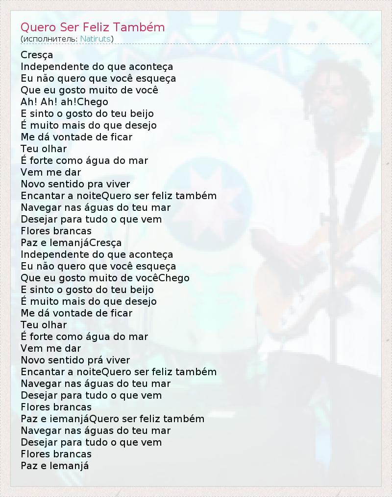 ГлавнаяИсполнителиNatirutsQuero Ser Feliz Também