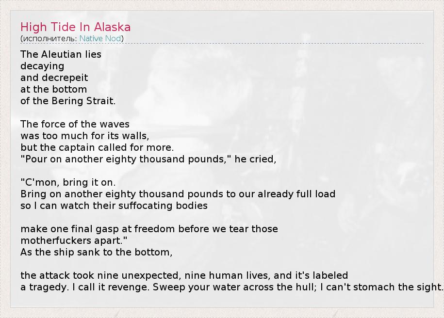 А как ты думаешь, о чем песня "High Tide In Alaska" ?
