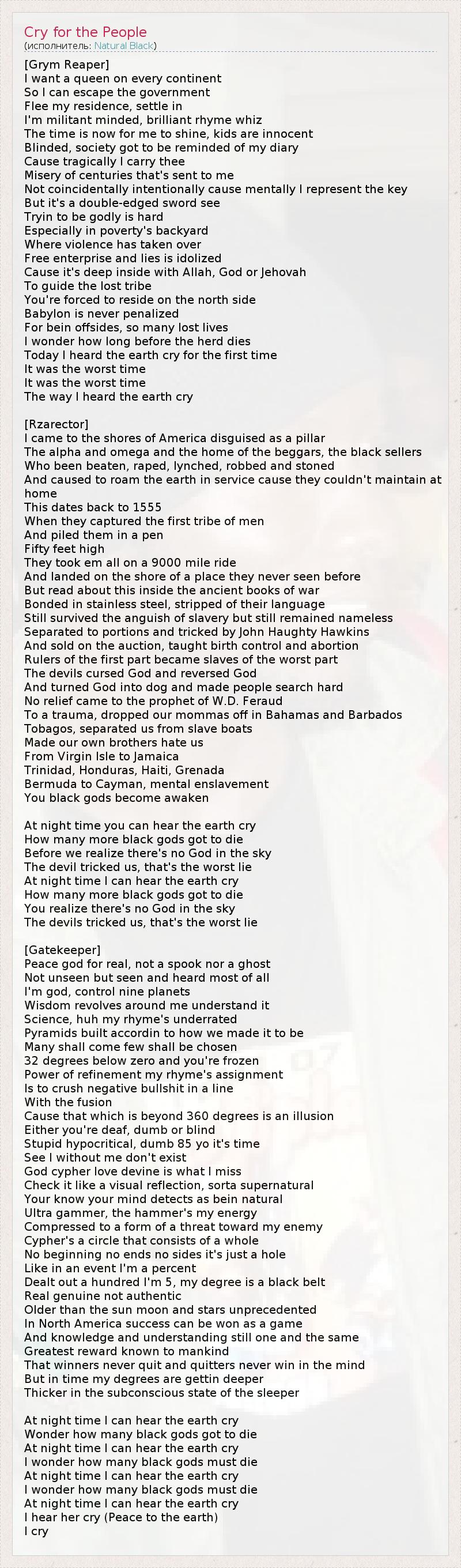 А как ты думаешь, о чем песня "Cry for the People" ?