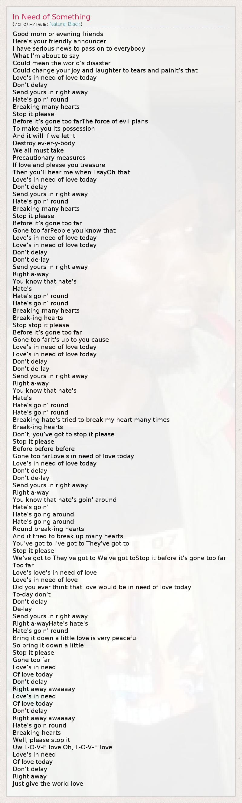 А как ты думаешь, о чем песня "In Need of Something" ?
