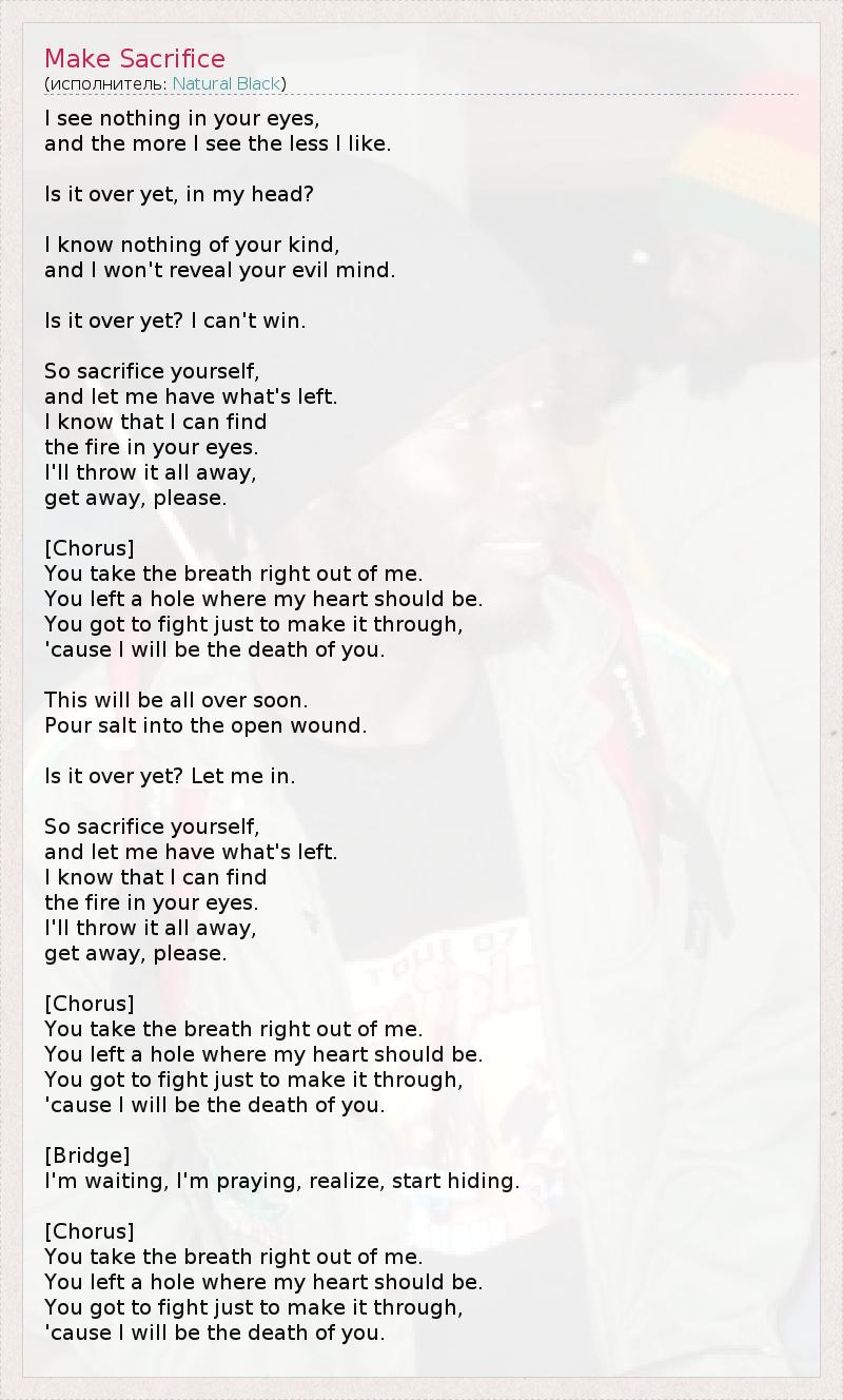А как ты думаешь, о чем песня "Make Sacrifice" ?