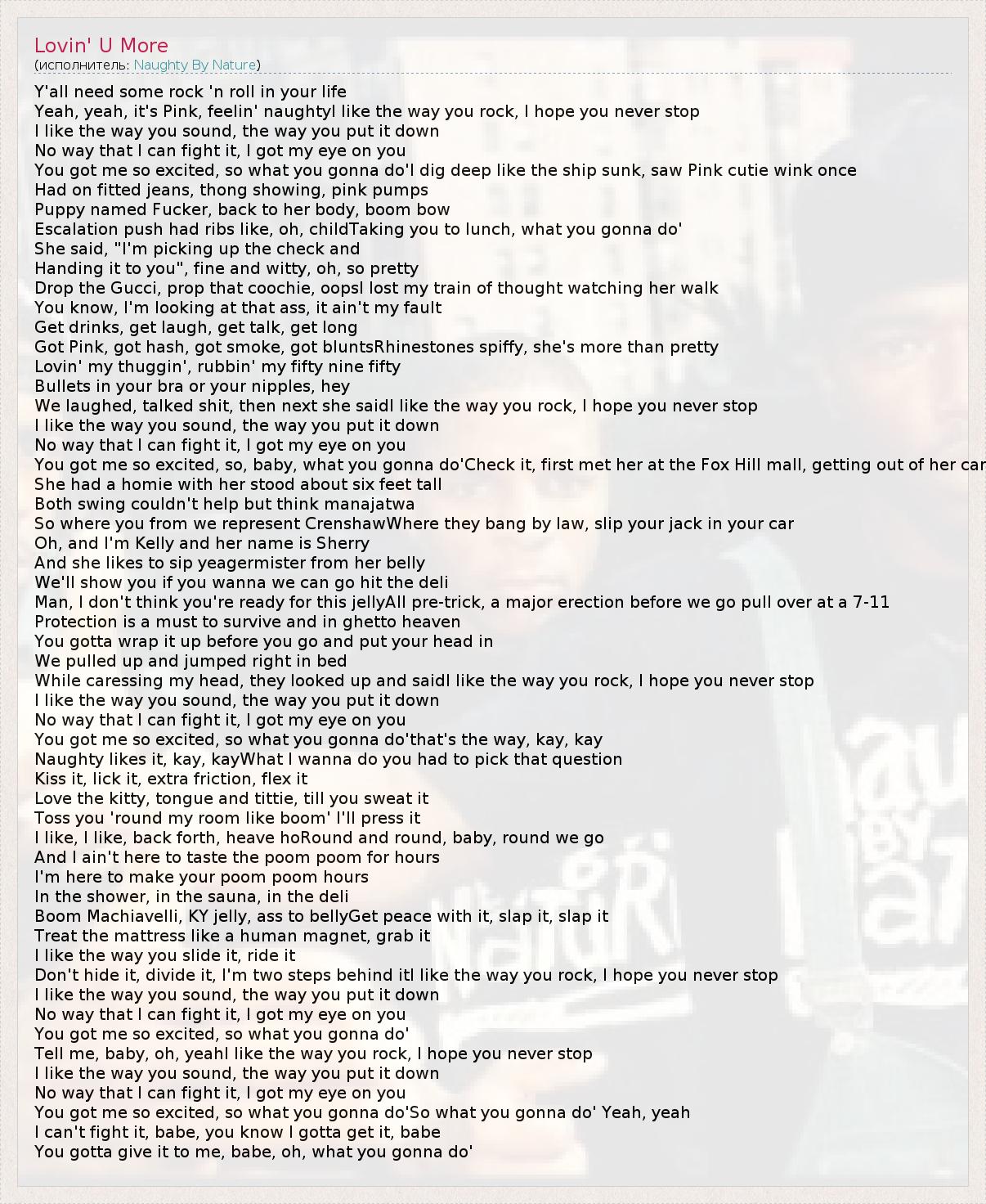 Yeah, yeah, it's Pink, feelin' naughtyI like the way you rock, I hope you never stop