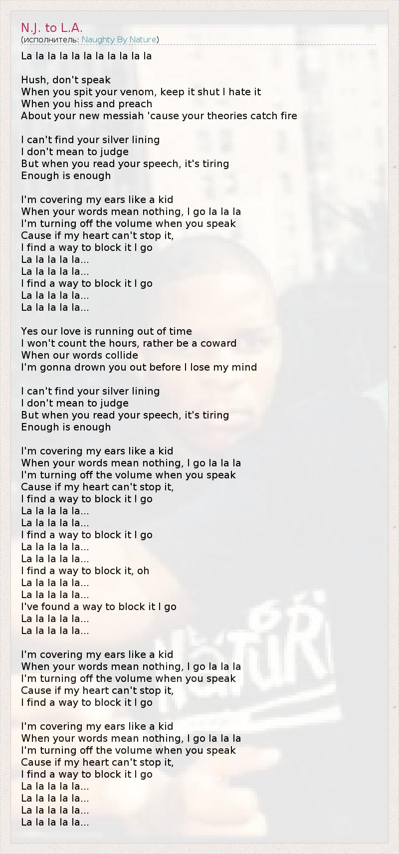 А как ты думаешь, о чем песня "N.J. to L.A." ?