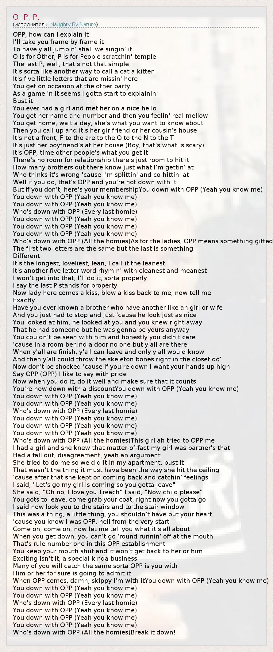 Who's down with OPP (All the homies)As for the ladies, OPP means something gifted