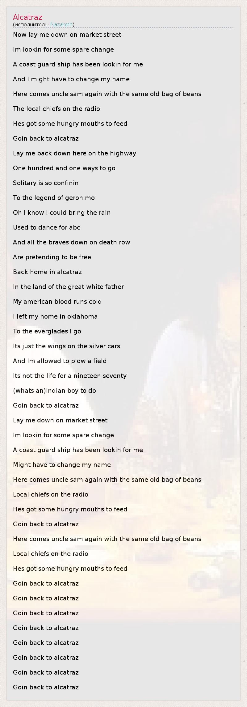 А как ты думаешь, о чем песня "Alcatraz" ?