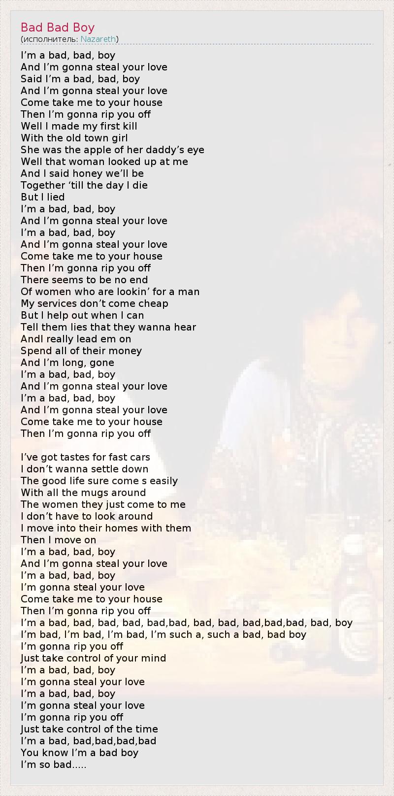 А как ты думаешь, о чем песня "Bad Bad Boy" ?