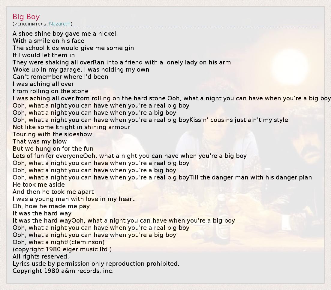 А как ты думаешь, о чем песня "Big Boy" ?