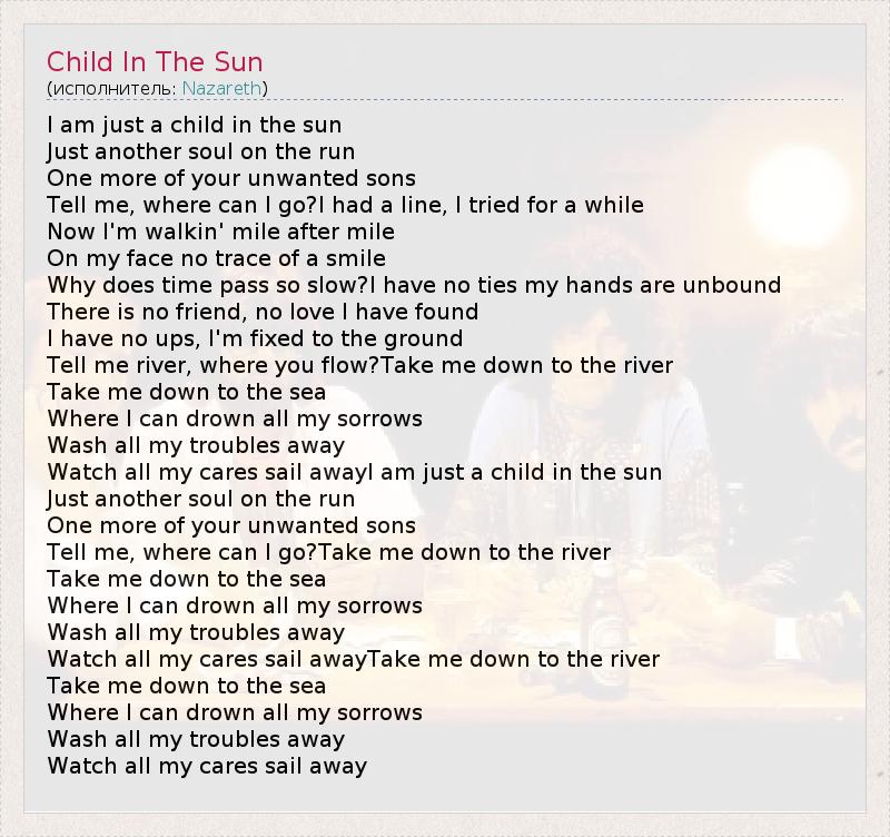 А как ты думаешь, о чем песня "Child In The Sun" ?