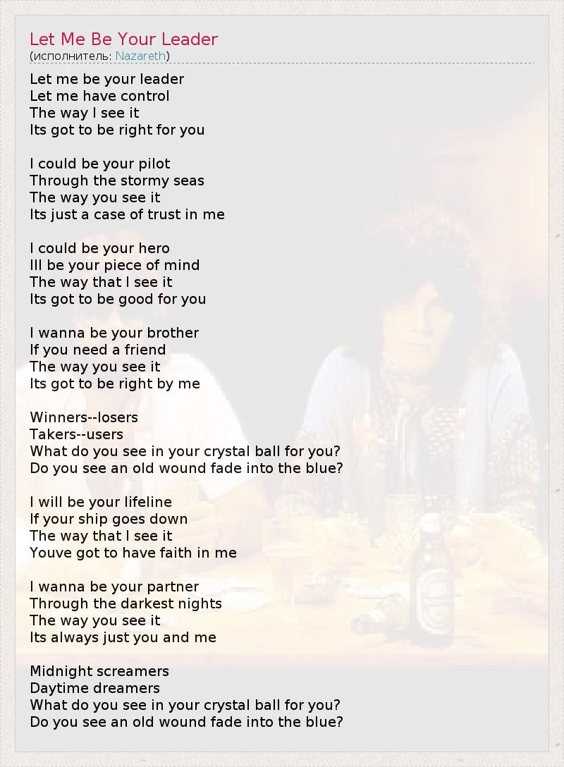А как ты думаешь, о чем песня "Let Me Be Your Leader" ?