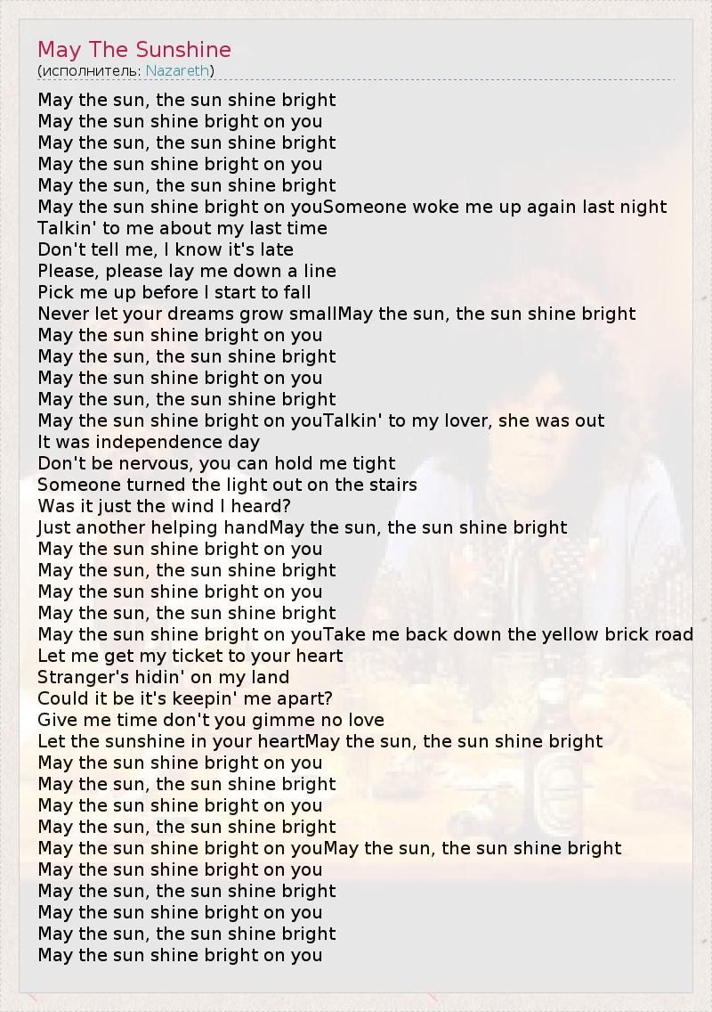 А как ты думаешь, о чем песня "May The Sunshine" ?