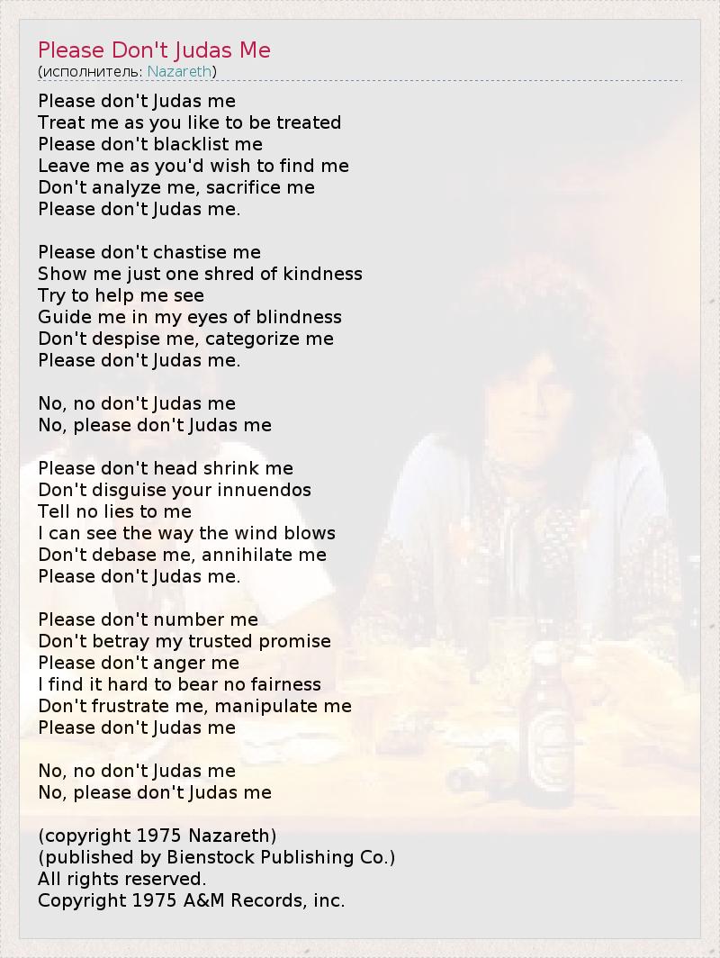 ГлавнаяИсполнителиNazarethPlease Don't Judas Me