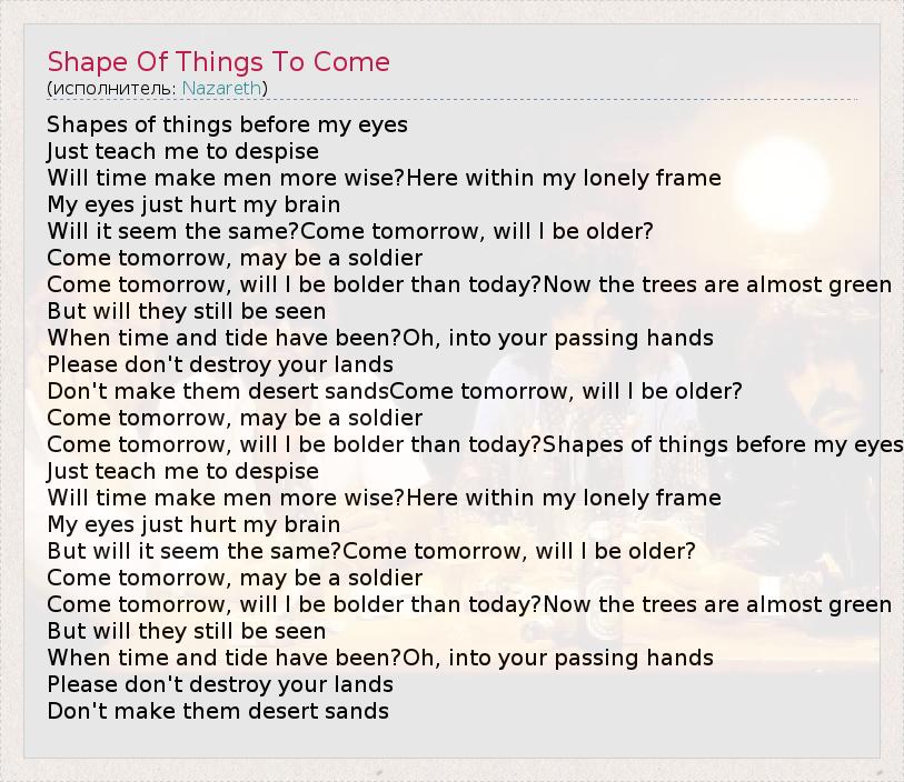 А как ты думаешь, о чем песня "Shape Of Things To Come" ?