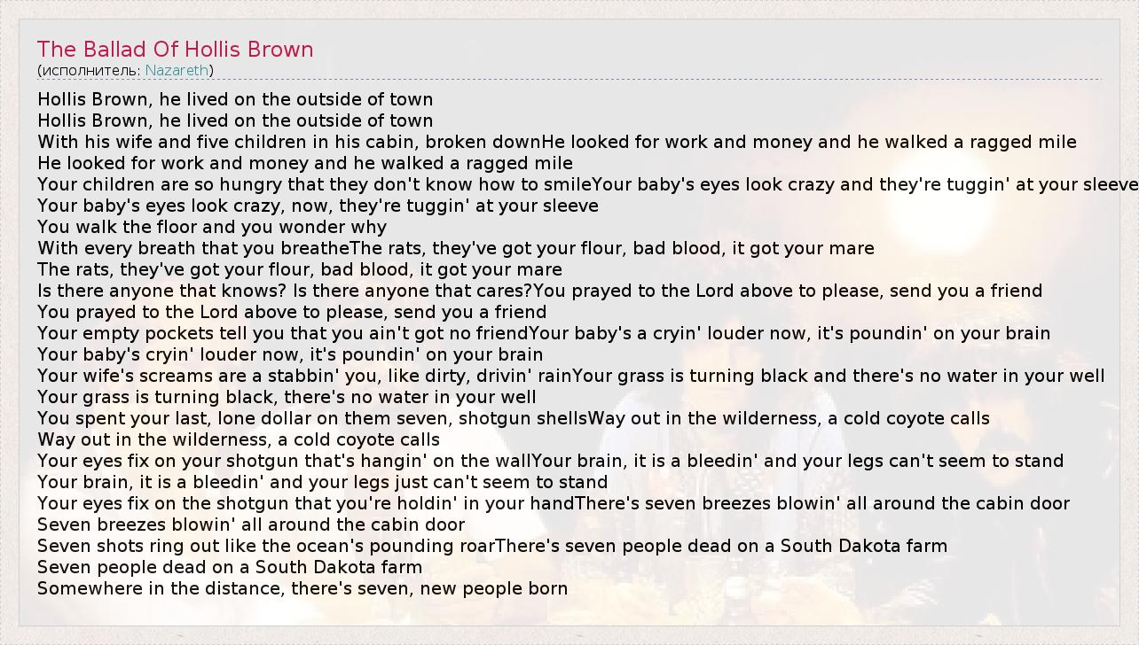 ГлавнаяИсполнителиNazarethThe Ballad Of Hollis Brown