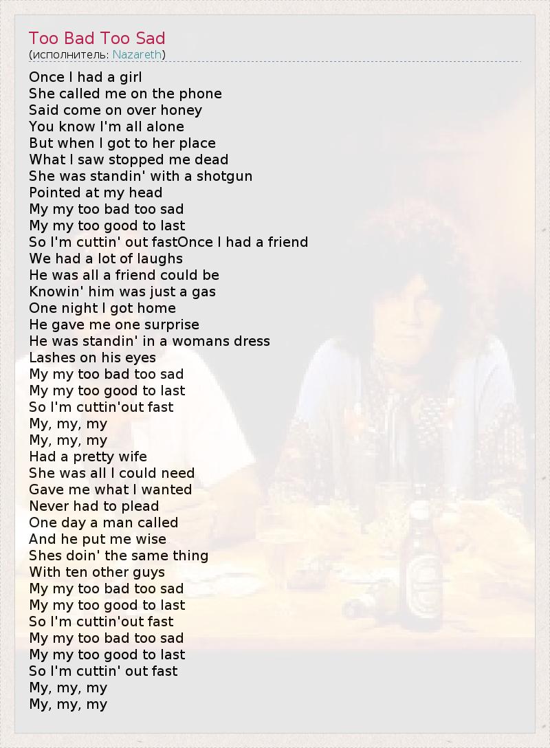 А как ты думаешь, о чем песня "Too Bad Too Sad" ?