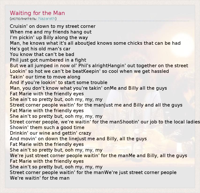 А как ты думаешь, о чем песня "Waiting for the Man" ?