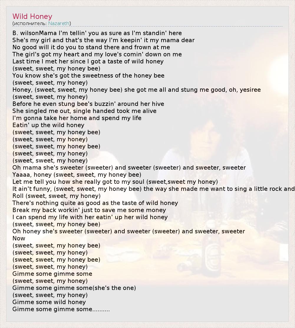 А как ты думаешь, о чем песня "Wild Honey" ?