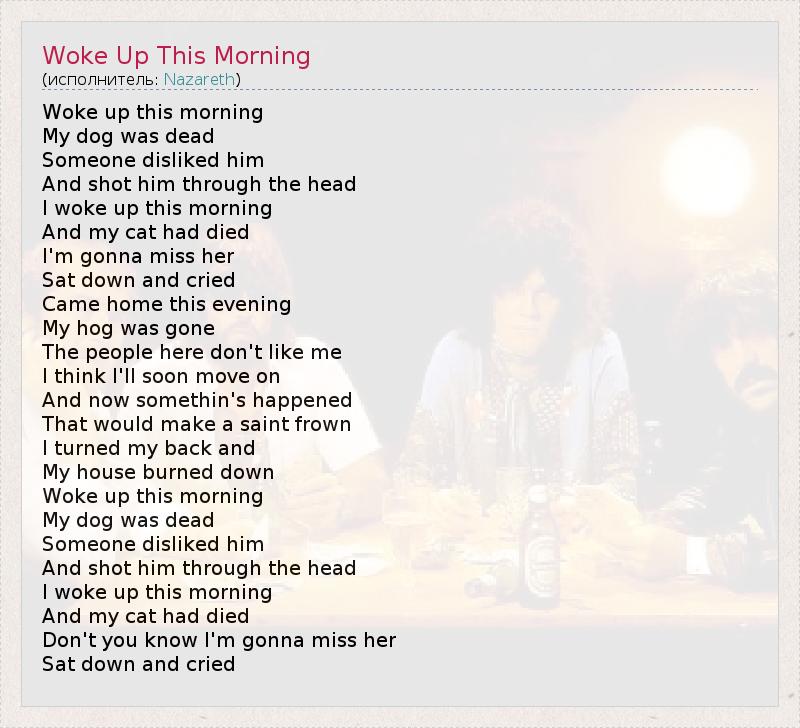 А как ты думаешь, о чем песня "Woke Up This Morning" ?