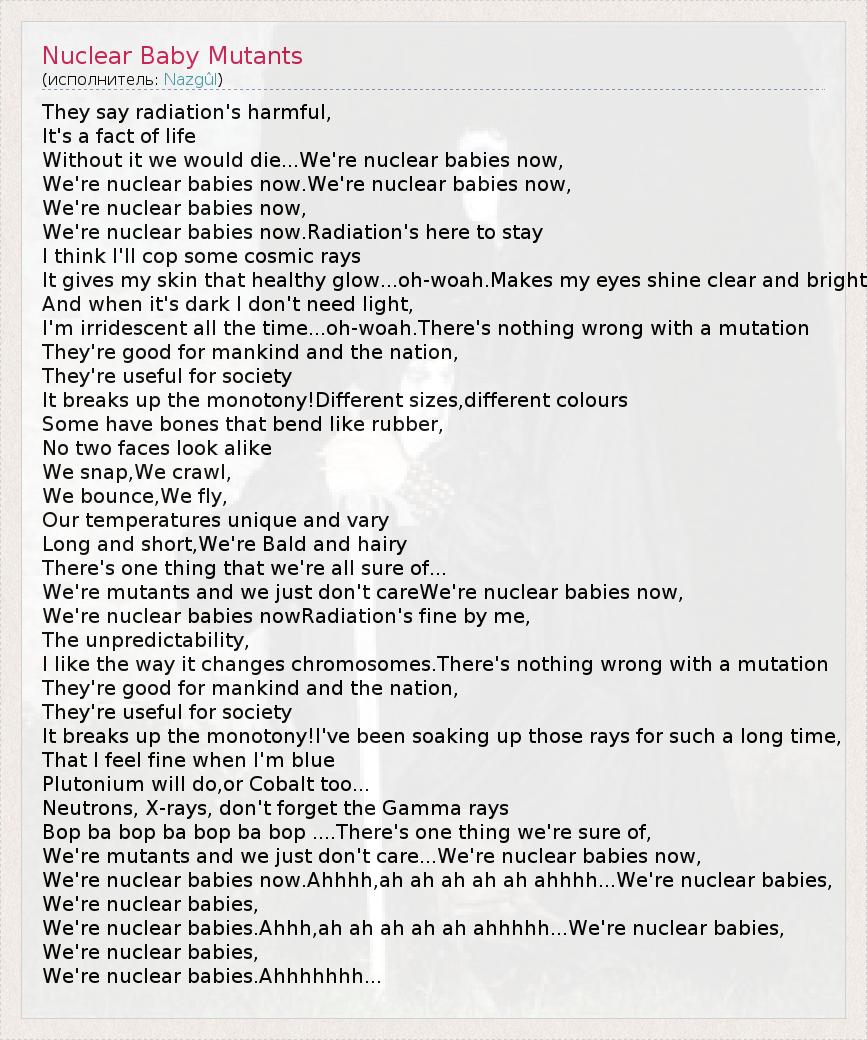 А как ты думаешь, о чем песня "Nuclear Baby Mutants" ?