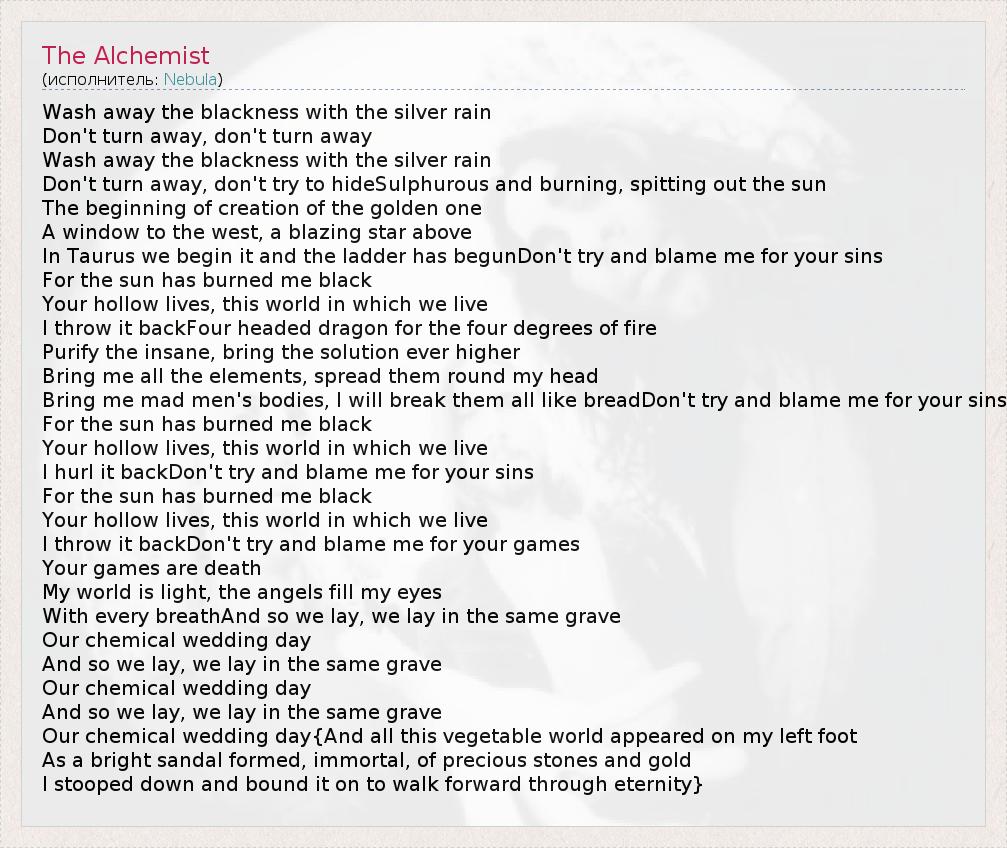 А как ты думаешь, о чем песня "The Alchemist" ?