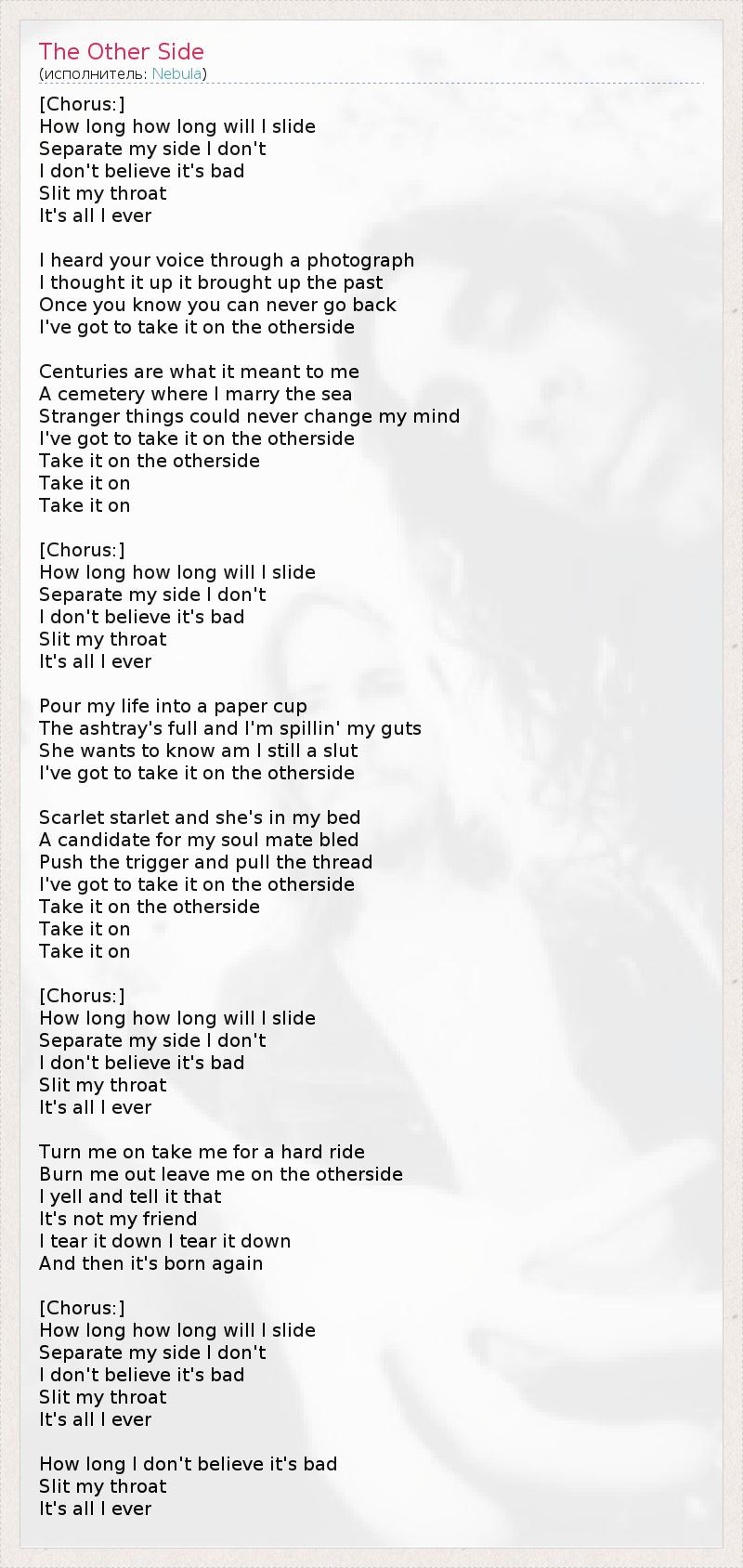 Сожги меня дотла, оставь меня там, по ту сторону бытия.