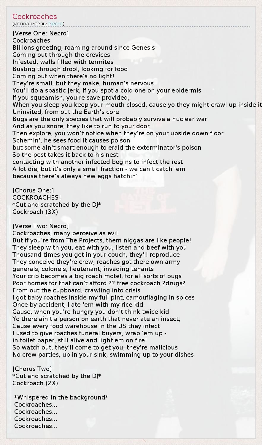 А как ты думаешь, о чем песня "Cockroaches" ?
