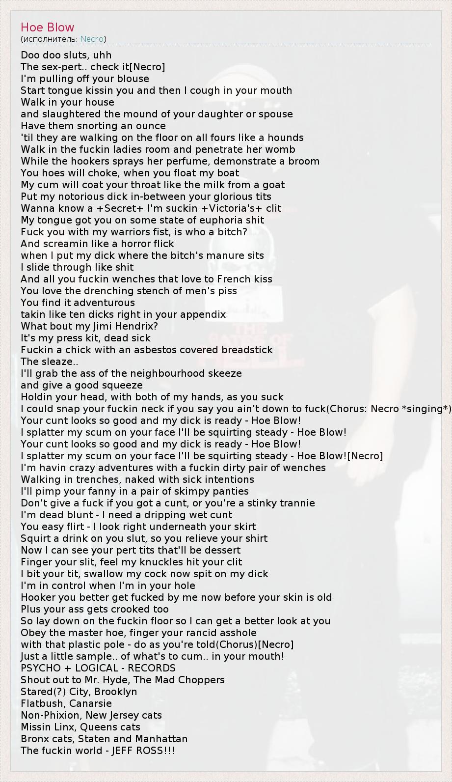I splatter my scum on your face I'll be squirting steady - Hoe Blow![Necro]