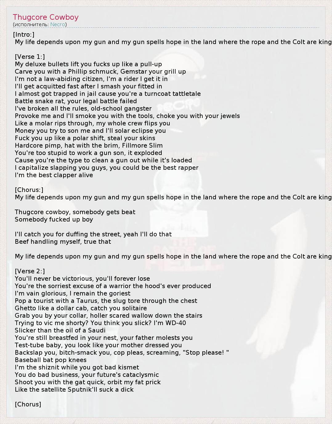 А как ты думаешь, о чем песня "Thugcore Cowboy" ?