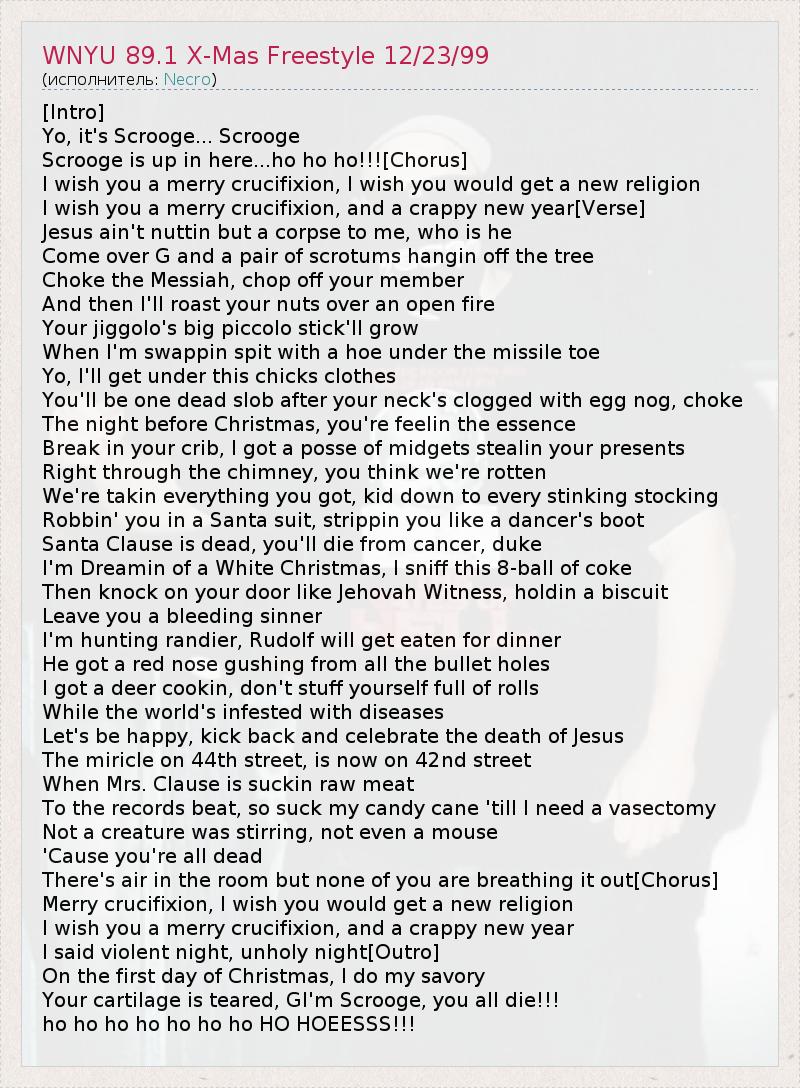 А как ты думаешь, о чем песня "WNYU 89.1 X-Mas Freestyle 12/23/99" ?