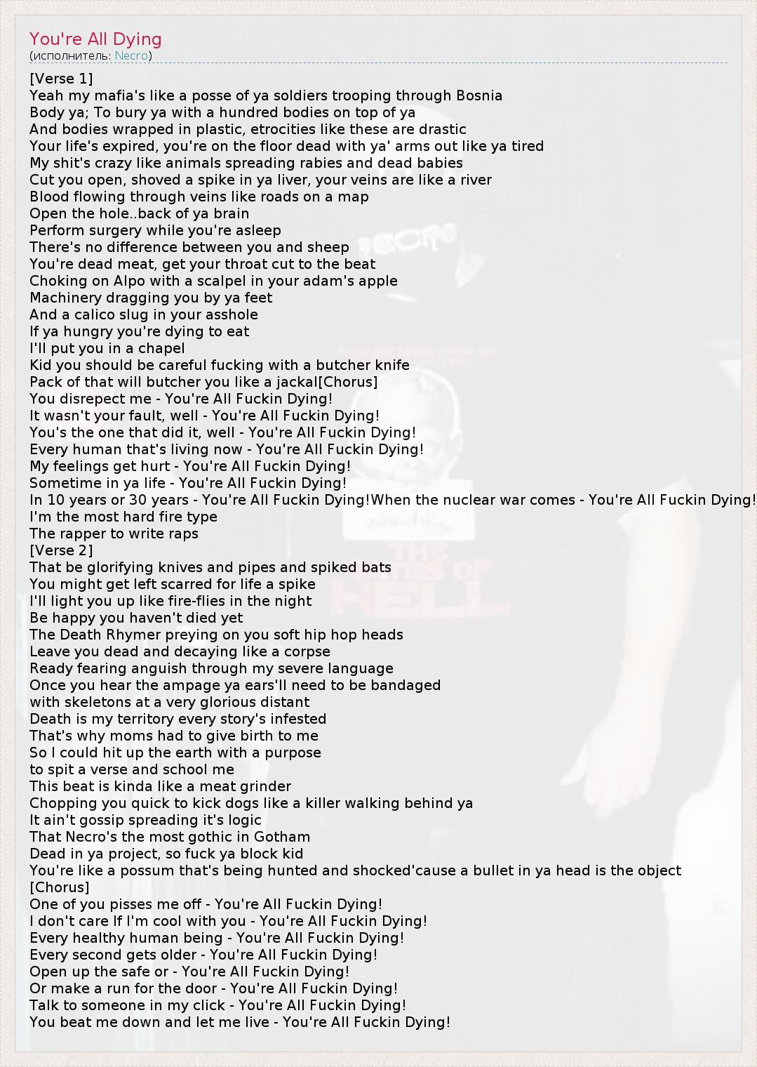 А как ты думаешь, о чем песня "You're All Dying" ?